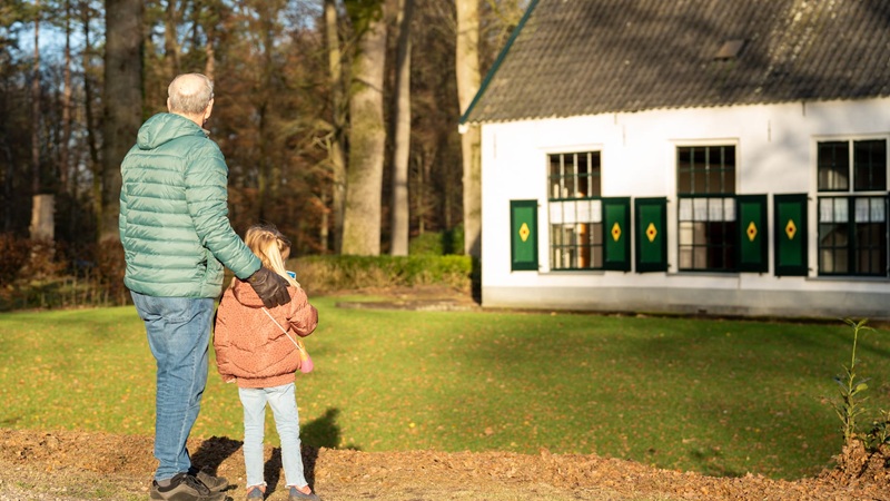 Opa en kleinkind voor Kasteel Staverden